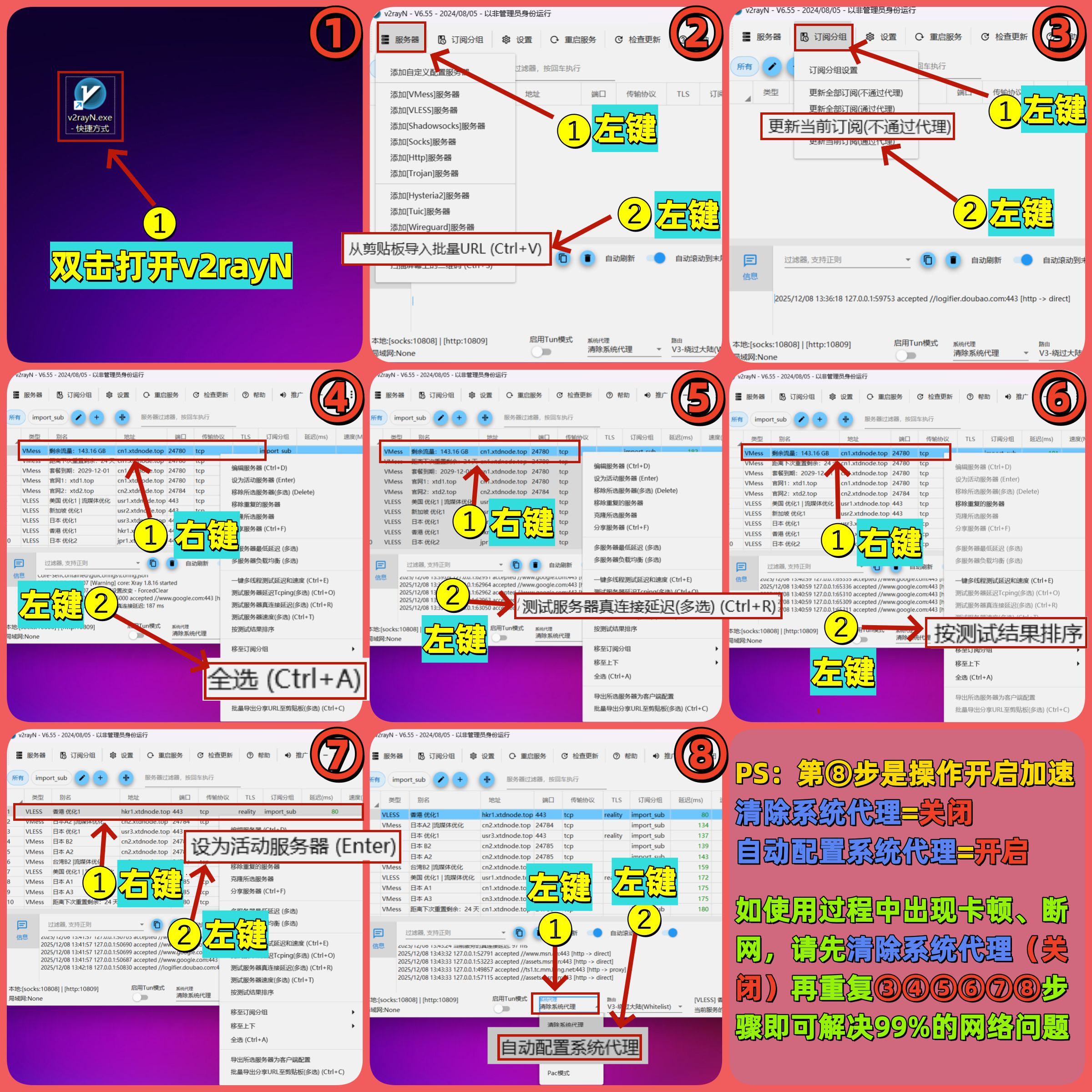 **<font color=red>认真看完教程再操作,事半功倍!</font> 有不明白的地方?<font color=red>==右下角咨询人工客服==</font>(在线时间09:30-23:30)** **<font color=red>认真看完教程再操作,事半功倍!</font> 有不明白的地方?<font color=red>==右下角咨询人工客服==</font>(在线时间09:30-23:30)** >### 一、下载加速工具 v2rayN #### 👉[点我下载V2rayN加速工具](https://manage.xtdapp.top/share/Tpbxma-x "[点击下载V2rayNG加速工具]") ①点击上方↑蓝色文字下载 V2rayN ②找到下载的「v2rayN-With-Core.7z」压缩文件 ③鼠标右键->解压缩 ④进入解压后的文件夹找到「v2rayN.exe」右键->发送到->桌面快捷方式(这样就可以在电脑桌面直接打开v2rayN)  >### 2. 校对电脑时间 这步非常重要否则无法使用 ①访问 https://time.is/ ②确认电脑与网页上面的北京时间快慢不超过1分钟就行 >### 3. 购买订阅节点URL(重要) #### 👉[点我获取订阅链接](/doc/44/ "点我获取订阅")</font><font color=red>(URL=订阅链接)</font> 获取完订阅链接请返回本页面继续按下方教程操作 >### 4.配置 v2rayN(节点) ①复制订阅链接 ②打开 v2rayN ③左上角「服务器」->从剪贴板导入 ④左上角「订阅分组」->更新订阅不通过代理 ⑤单击一条线路->右键+全选(Ctrl+A)->右键+测试服务器真连接延迟(Ctrl+R)->再右键+按测试结果排序 ⑥选择合适的线路->回车(右键+设为活动服务器) ⑦底部系统代理->自动配置系统代理 PS:底部系统代理是开关,里面的自<动配置系统代理>是开启,<清除系统代理>是关闭  >### 5. 测试 **[youtube.com](youtube.com "youtube.com")<<<测试能不能打开这个网站(在自带浏览器或者谷歌浏览器里打开),能打开就说明线路连接成功,开始快乐看世界~** >### 广告 **新天地发卡商城(请认真观看商品详情使用)** ==👉[点击访问1:新天地·发卡](https://fk.xtdcloud.xyz "点击访问1:https://fk.xintiandi.xyz")== *商城商品皆为独享可改密使用,高质量URL订阅节点🚀、tg账号、全球苹果ID账号、ChatGPT账号、谷歌邮箱账号、Instagram账号、FaceBook账号、Twitter账号、X账号、小蓝鸟账号、TikTok账号、Whatsapp账号、ChatGPT4.0Plus开通续费、全球手机验证码接码、支持定制等* **<p style="color: red;">PS:本站及跳转前往线路如无法打开,请使用自带浏览器或谷歌浏览器切换4G /WIFI或者打开/关闭代理前往</p>** ----- 请遵守法律法规,本网站所提供的信息,只供学习参考之用。严禁用作其他用途,您需对自己的自主行为和决定负责。凡以任何方式登录本网站或直接、间接使用本网站资料者,视为自愿接受本网站声明的约束。 >### 一、下载加速工具clash **对应位数系统下载对应版本的软件(Windows 11 用户请安装在C盘)** 👉[点我下载Clash for windows 0.20.39 - 中文最终版(64位)](https://app.xtdapp.top/apps/Clash.for.Windowsx64.exe) 👉~~[点我下载Clash for windows 0.20.39 - 中文最终版(32位)]~~ ①点击上方↑按钮下载 ②双击运行 Clash for Windows.exe并安装 (安装弹窗选择允许) ③下载好后鼠标右键 选择打开 Clash for Windows 若出现以下提示 点更多信息->仍要运行  >### 2. 校对电脑时间 这步非常重要否则无法使用 ①访问 https://time.is/ ②确认电脑与网页上面的北京时间快慢不超过1分钟就行 >### 3. 购买订阅节点URL(重要) 👉[点我获取订阅链接](/doc/44/ "点我获取订阅")</font><font color=red>(URL=订阅链接)</font> 👉[点我获取订阅链接](/doc/44/ "点我获取订阅")</font><font color=red>(URL=订阅链接)</font> 获取完订阅链接请返回本页面继续按下方教程操作 ①打开软件点左侧->订阅配置 ②粘贴在上方URL方框中(上面第二步骤最后复制的订阅链接) ③点右方下载 (若不成功检查左侧->常规设置->系统代理要在关闭状态)  >### 4.选择线路(节点) ①软件左侧->节点列表 ②选上方Rule(规则)模式 ③第一行->下方选择线路(选带地区名字的) (如果没有显示线路,请检查或重复第三步确认导入成功)  >### 5. 开启代理 ①软件左侧->常规设置 ②打开系统代理开关,其他保持默认即可 (这是软件的连接开关按钮)绿色是打开状态,红色是关闭状态,不用时候记得关闭!!!  **[youtube.com](youtube.com "youtube.com")<<<测试能不能打开这个网站(在自带浏览器或者谷歌浏览器里打开),能打开就说明线路连接成功,开始快乐看世界~** >### 广告 **新天地发卡商城(请认真观看商品详情使用)** ==👉[点击访问1:新天地·发卡](https://fk.xtdcloud.xyz "点击访问1:https://fk.xintiandi.xyz")== ==👉[点击访问2:新天地·发卡(备用)](https://fk.xtdcloud.xyz "点击访问2:https://fk.xintiandi.xyz")== *商城商品皆为独享可改密使用,高质量URL订阅节点🚀、tg账号、全球苹果ID账号、ChatGPT账号、谷歌邮箱账号、Instagram账号、FaceBook账号、Twitter账号、X账号、小蓝鸟账号、TikTok账号、Whatsapp账号、ChatGPT4.0Plus开通续费、全球手机验证码接码、支持定制等* **新天地加速梯节.(附带小白教程)** ==👉[点击访问1:新天地·加速云](/doc/44/ "👉点击访问1:新天地·加速云")== ==👉[点击访问1:新天地·加速云(备用)](/doc/44/ "👉点击访问1:新天地·加速云")== *加速梯节.🚀适用于使用苹果、安卓、鸿蒙、Mac电脑、Win/华为电脑、路由器、电视设备加速网络使用 玩游戏延迟低|4K视频无缓冲|高质量原生IP|跨境电商必备|支持定制* **<p style="color: red;">PS:本站及跳转前往线路如无法打开,请使用自带浏览器或谷歌浏览器切换4G /WIFI或者打开/关闭代理前往</p>** ----- 请遵守法律法规,本网站所提供的信